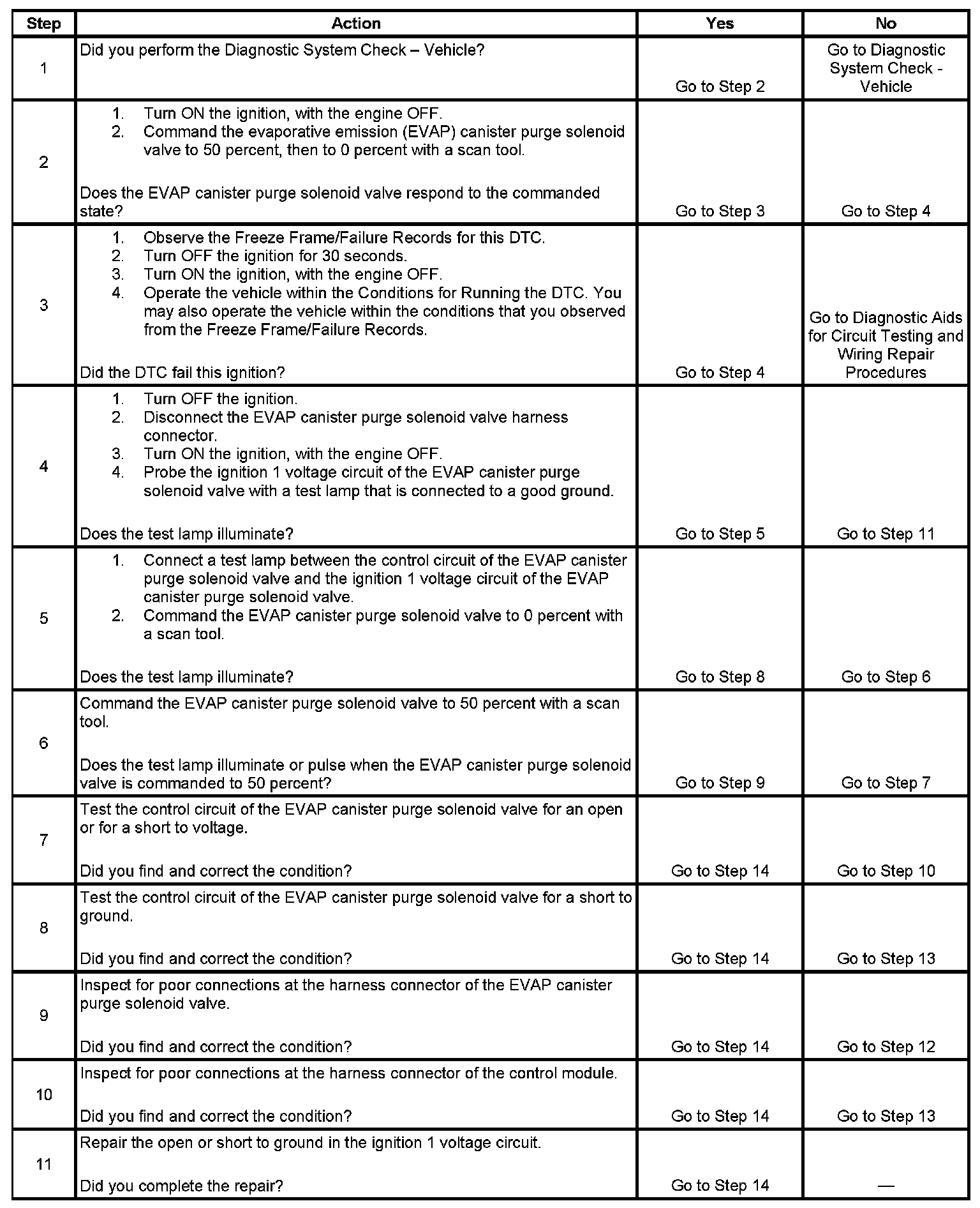 6. This step tests if a ground is constantly being applied to the EVAP canister purge solenoid valve.