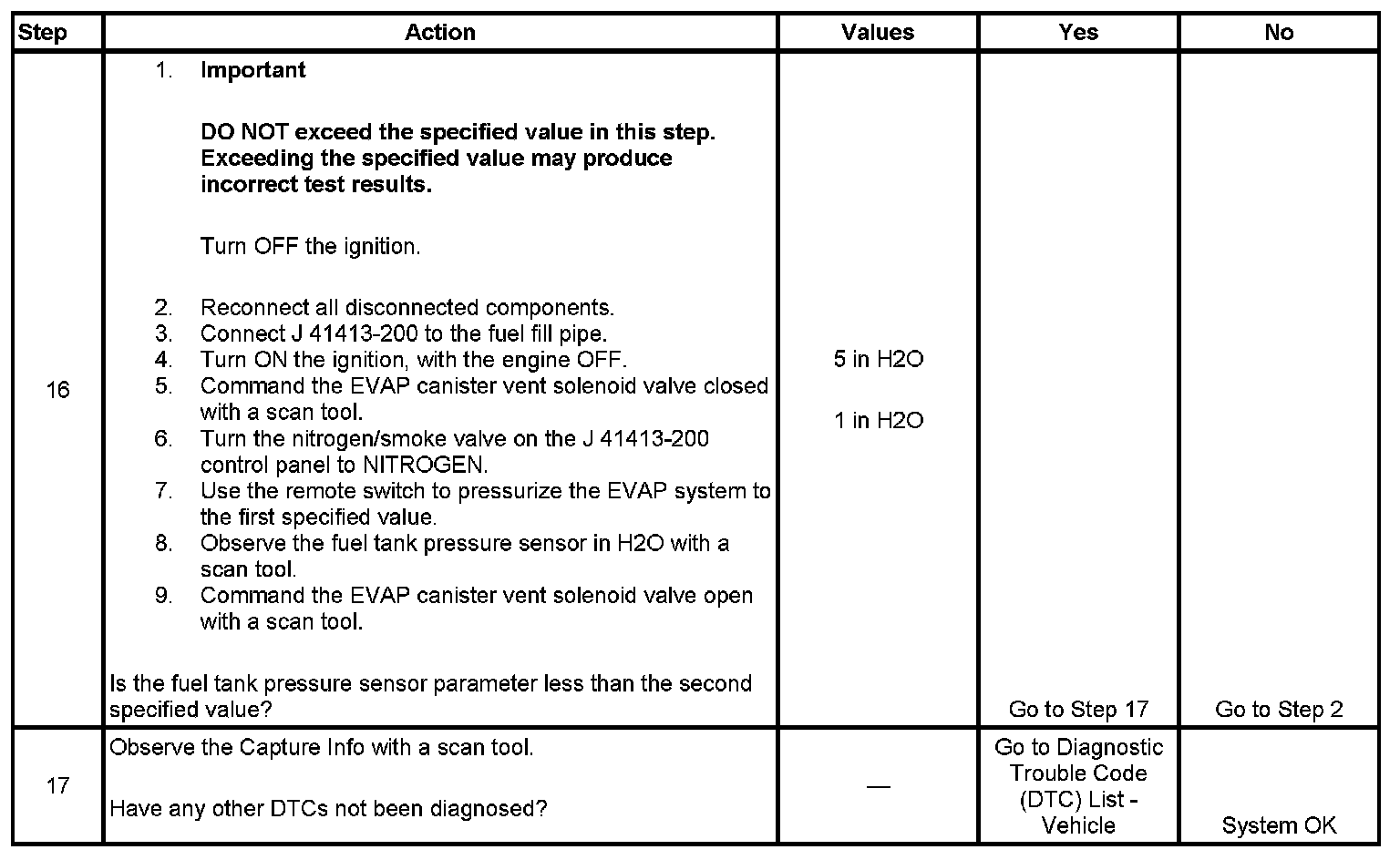 - When using the Evaporative Emission System Tester (EEST) to apply pressure, you can regulate the amount of pressure by activating the remote switch ON and OFF while observing pressure in the EVAP system using a scan tool. DO NOT use more than 5 inches H2O. More than 5 inches H2O applied to the EVAP system can cause the canister vent solenoid valve to temporarily remain in the closed position, which could lead to misdiagnosis in this procedure.