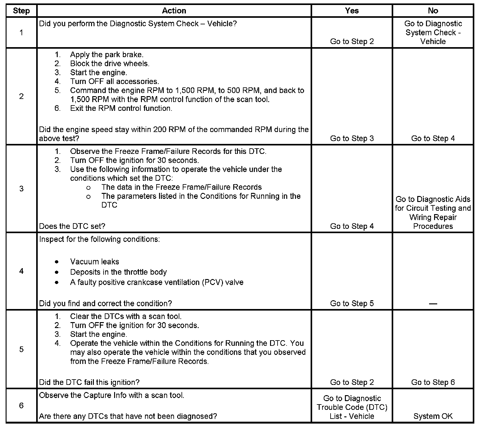 The electronic throttle control (ETC) system uses various inputs from the powertrain control module (PCM). This system uses these inputs to control the idle speed through serial data circuits to the throttle actuator control (TAC) module. The DC motor, which is located on the throttle body, activates the throttle plate. In order to decrease idle speed, the TAC module commands the throttle closed, reducing air flow into the engine, and the idle speed decreases. In order to increase the idle speed, the TAC module commands the throttle plate open, allowing more air in order to bypass the throttle plate. If the actual idle RPM does not match the desired idle RPM within a calibrated time, DTC P0507 sets.