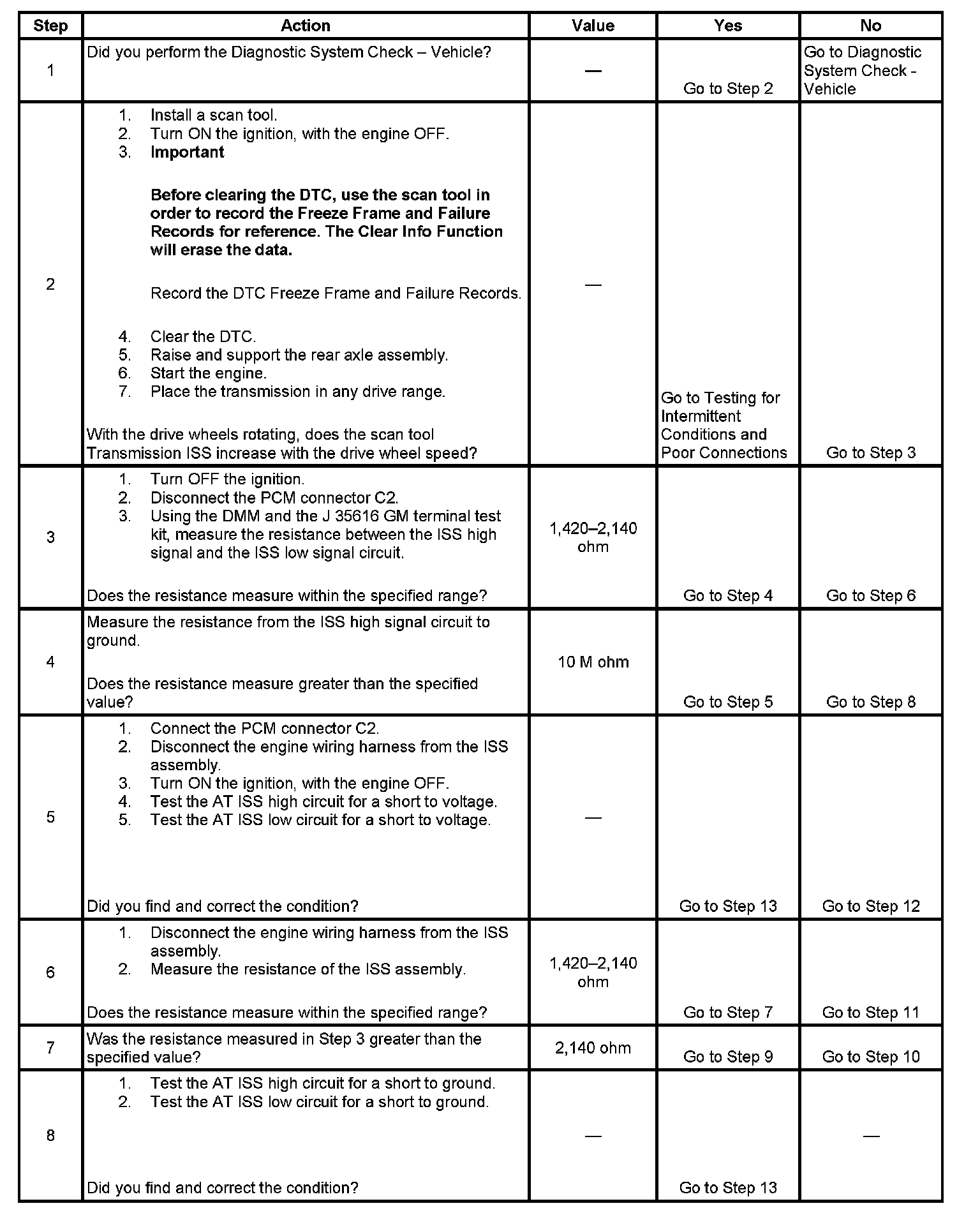 2. This step tests for proper operation to the AT ISS sensor.