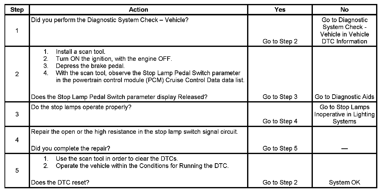 - The PCM does not detect a stop lamp switch transition.