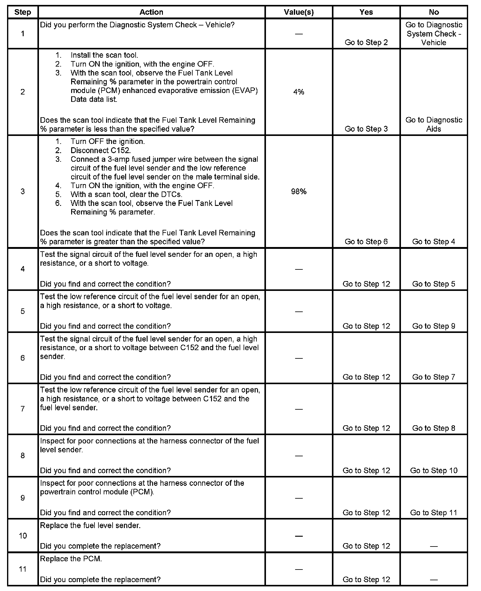This diagnostic tests for a higher than normal secondary fuel level sender signal.
