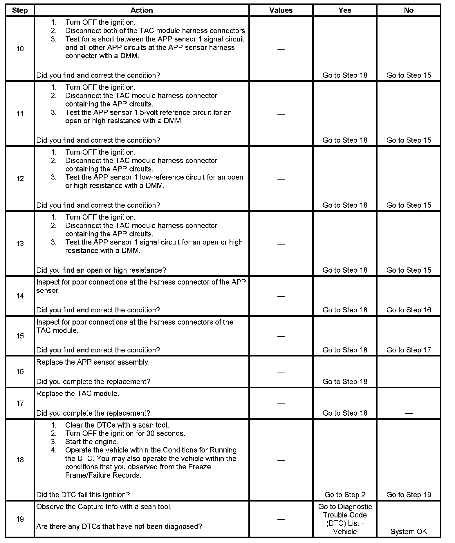 10. This step determines whether the TAC module or a shorted circuit is causing the condition.