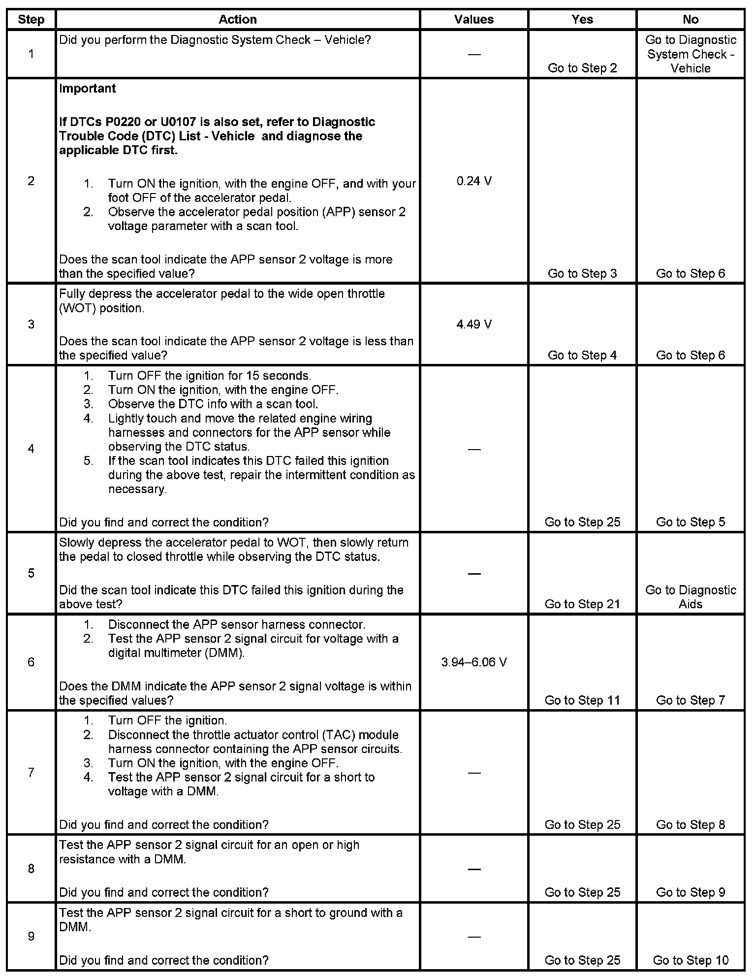 2. The throttle position (TP) sensor 2 and the APP sensor 2 share a common 5-volt reference source. Diagnose DTC P0220 first if that DTC is also set.