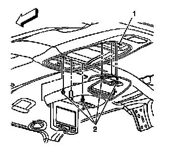 4. Insert the J 38778 between the headliner and the DVD player assembly.