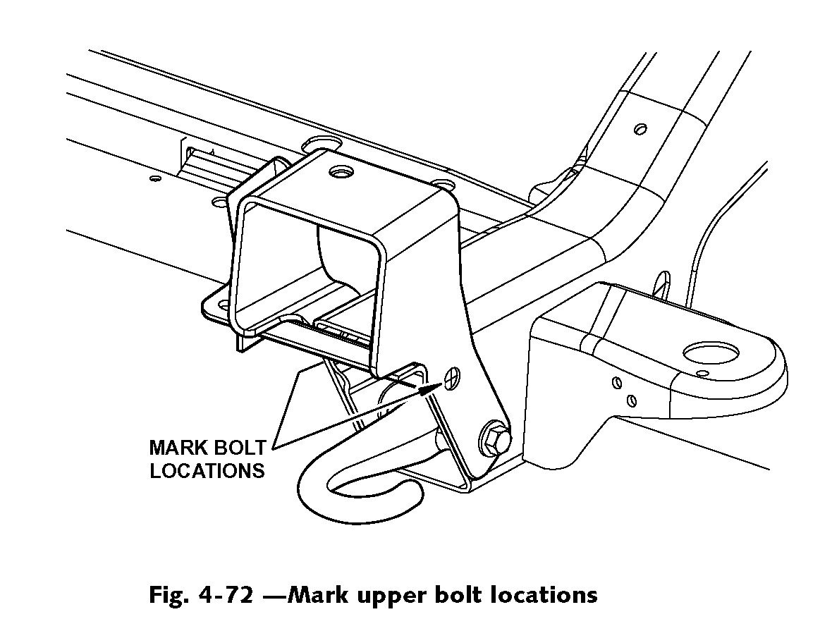 5. Align front edge of bracket with front edge of frame and mark upper bolt locations on frame (Fig. 4-72).