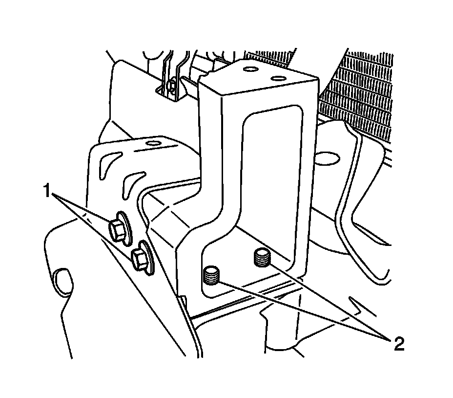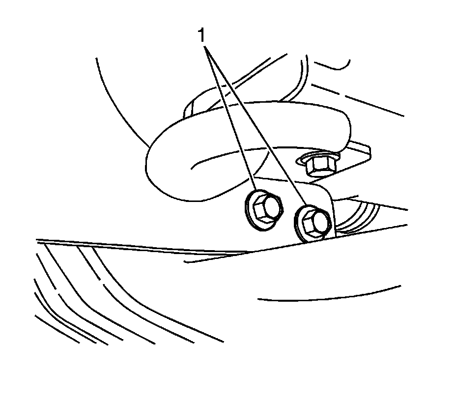 13. Remove the upper guard support bracket front fasteners (1) from the vehicle.