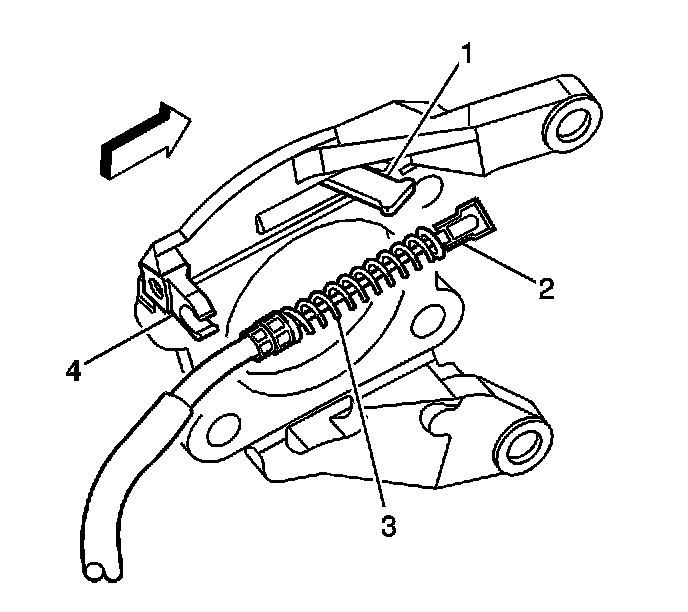 5. Remove the park brake cable from the mounting bracket (4) by depressing the locking tabs.