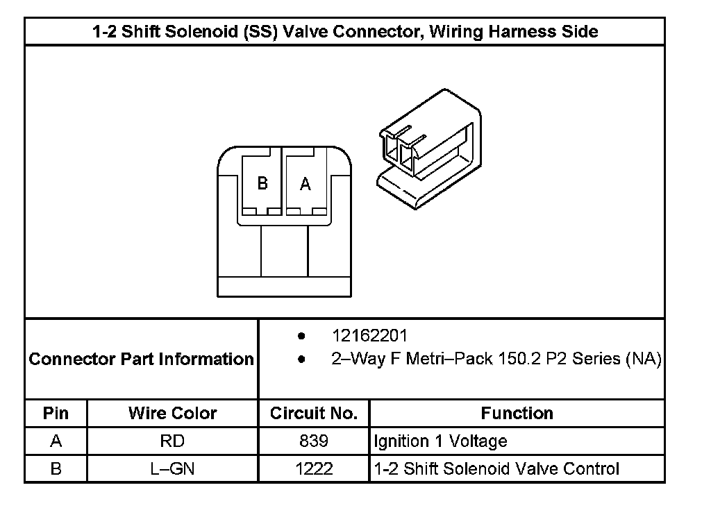 1-2 Shift Solenoid (SS) Valve Connector, Wiring Harness Side: