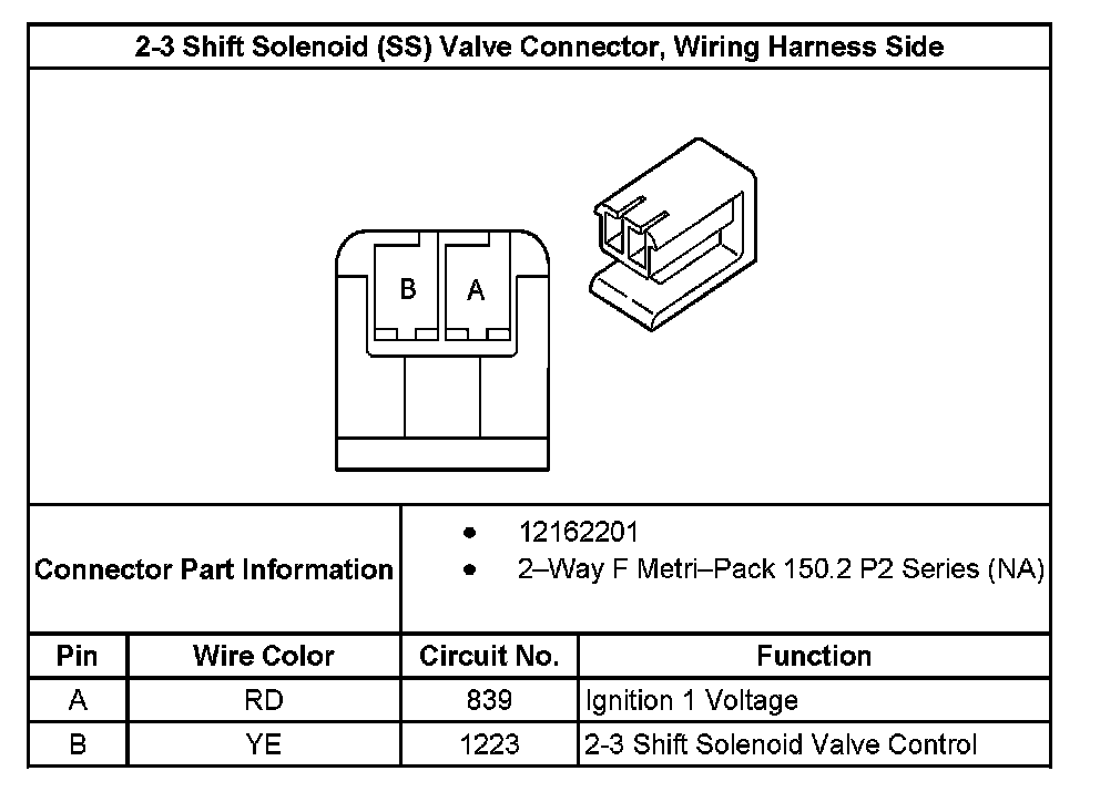 2-3 Shift Solenoid (SS) Valve Connector, Wiring Harness Side: