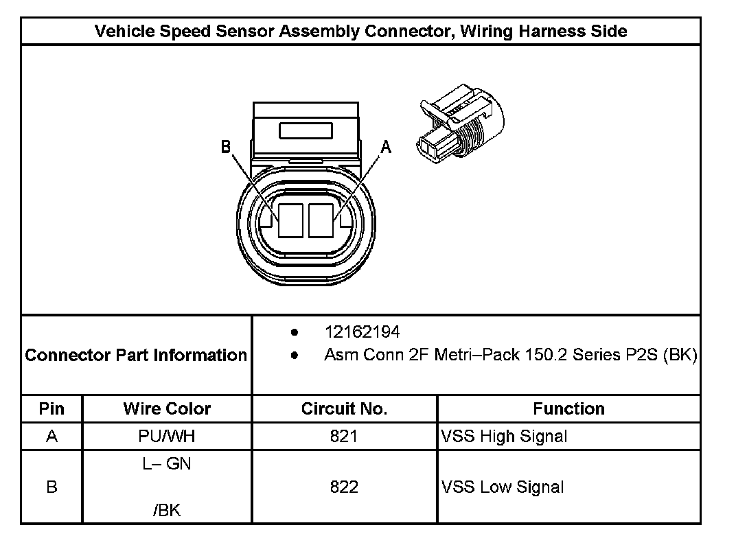 Vehicle Speed Sensor Assembly Connector, Wiring Harness Side: