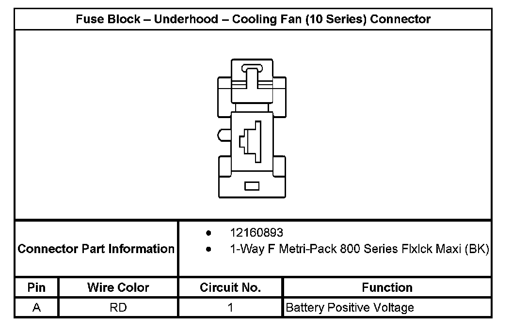 Fuse Block - Underhood - Cooling Fan (10 Series) Connector: