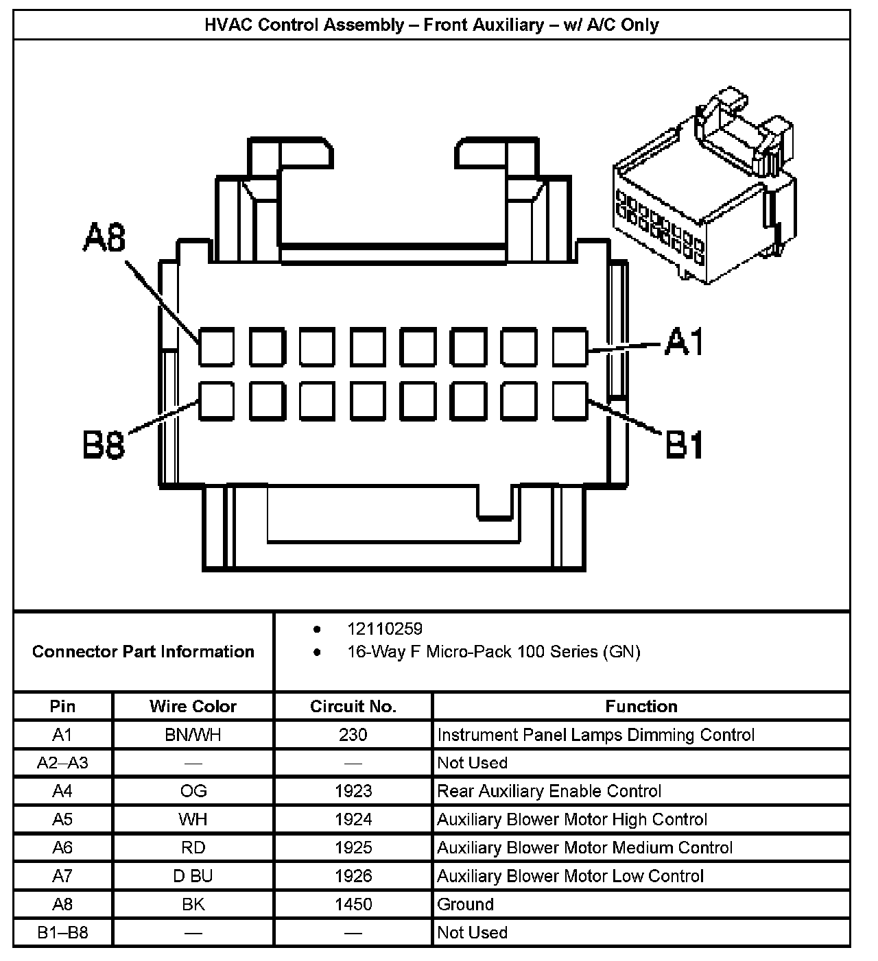 HVAC Control Assembly - Front Auxiliary - With A/C Only: