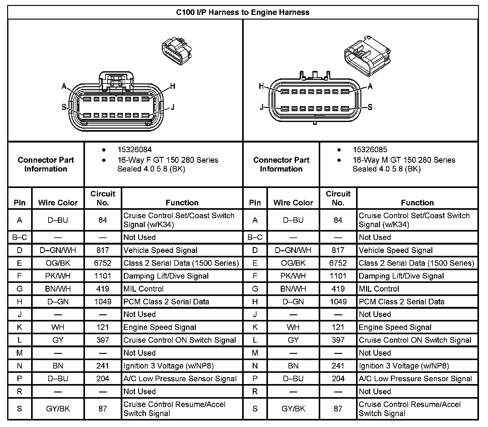 C100 I/P Harness To Engine Harness: