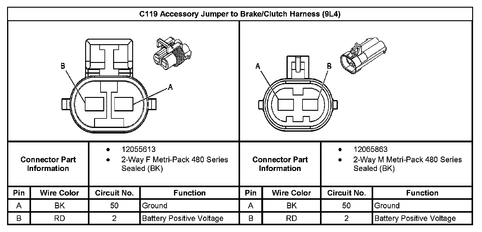C119 Accessory Jumper To Brake/Clutch Harness (9L4):