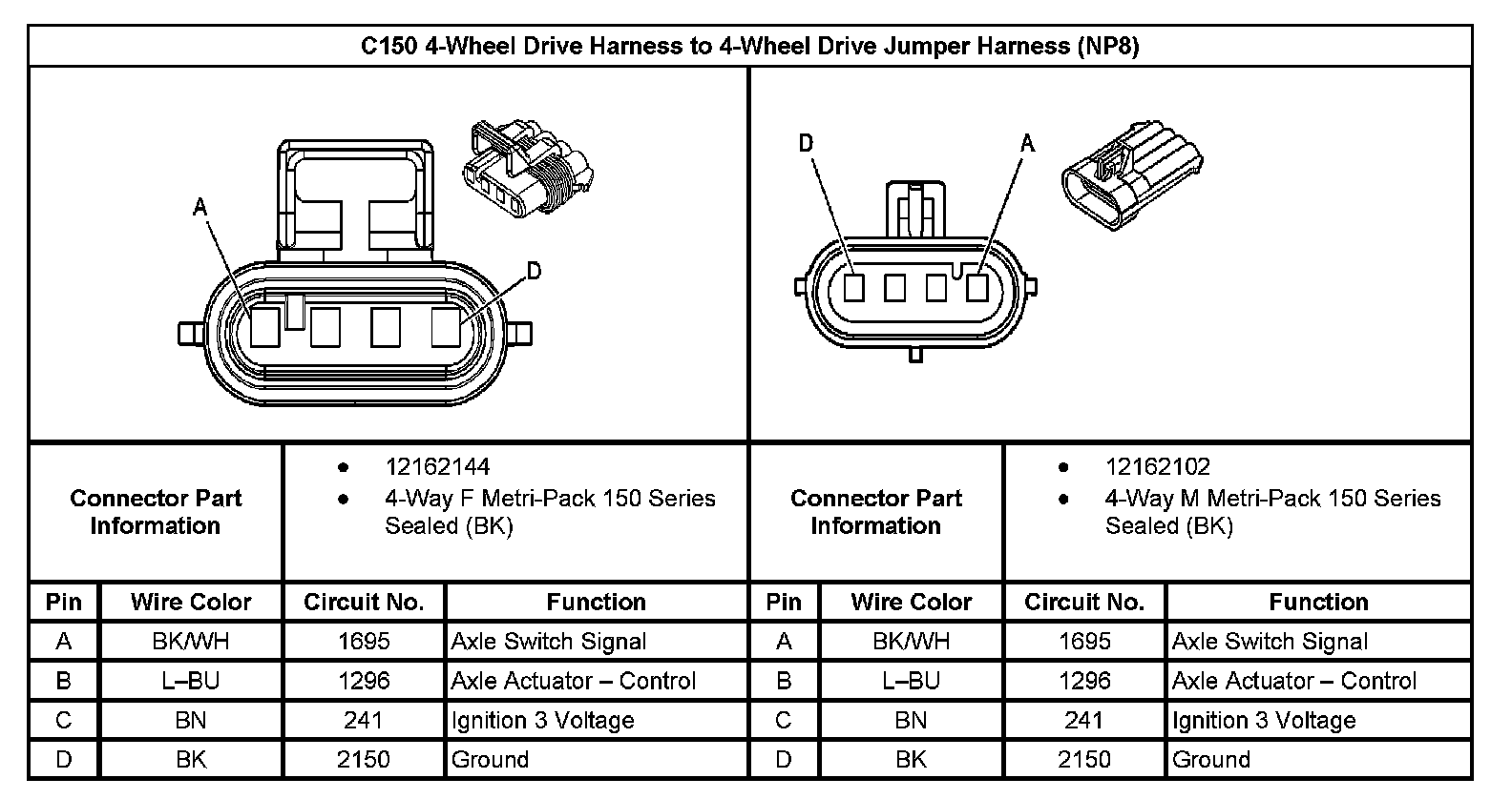 C150 4-Wheel Drive Harness To 4-Wheel Drive Jumper Harness (With RPO Code NP8):