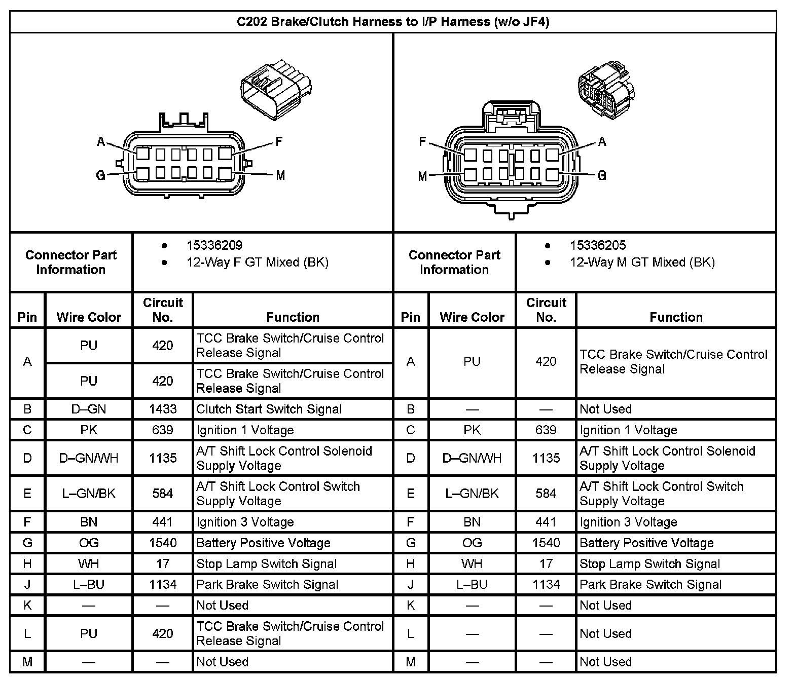 C202 Brake/Clutch Harness To I/P Harness (Without RPO Code JF4):