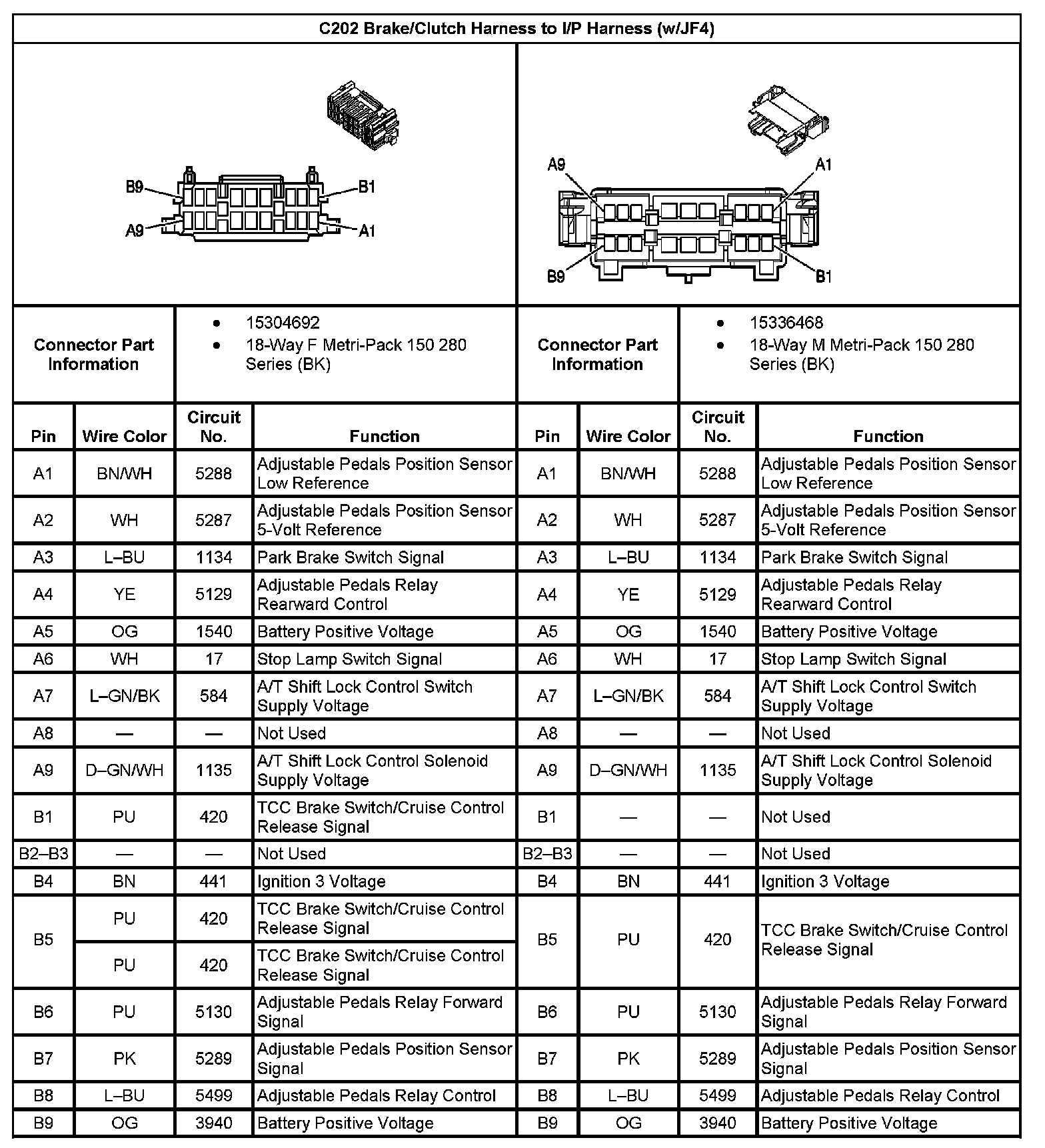 C202 Brake/Clutch Harness To I/P Harness (With RPO Code JF4):