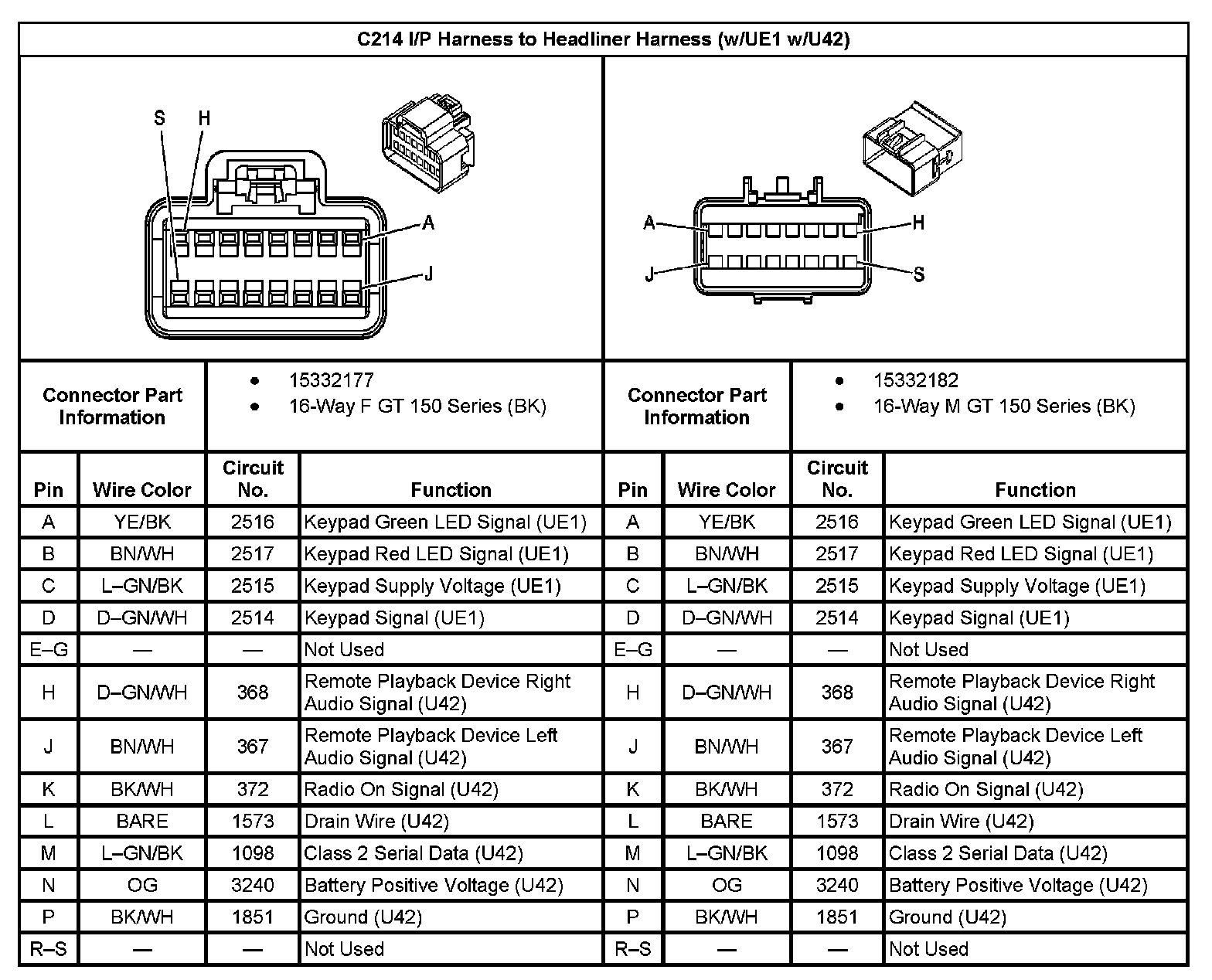 C214 I/P Harness To Headliner Harness (With RPO Code UE1 And U42):