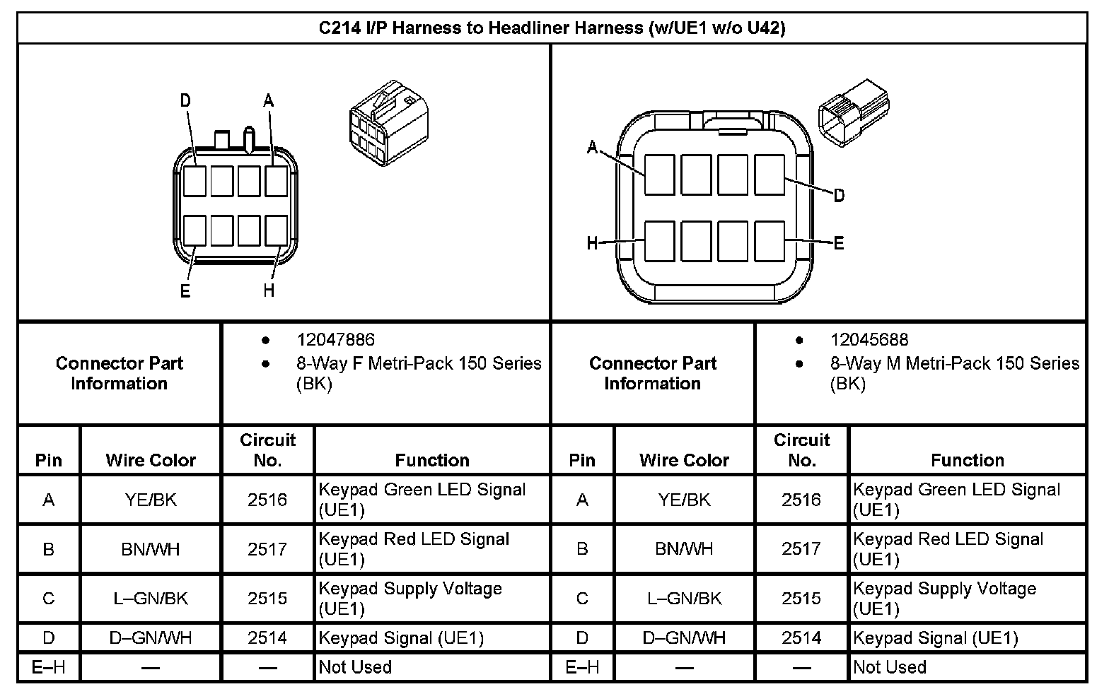 C214 I/P Harness To Headliner Harness (With RPO Code UE1 And Without RPO Code U42):