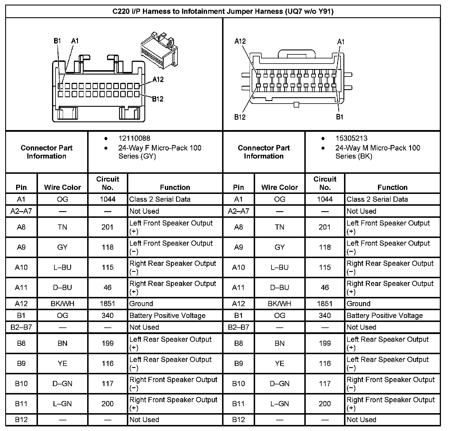 C220 I/P Harness To Infotainment Jumper Harness (With RPO Code UQ7 And Without RPO Code Y91):