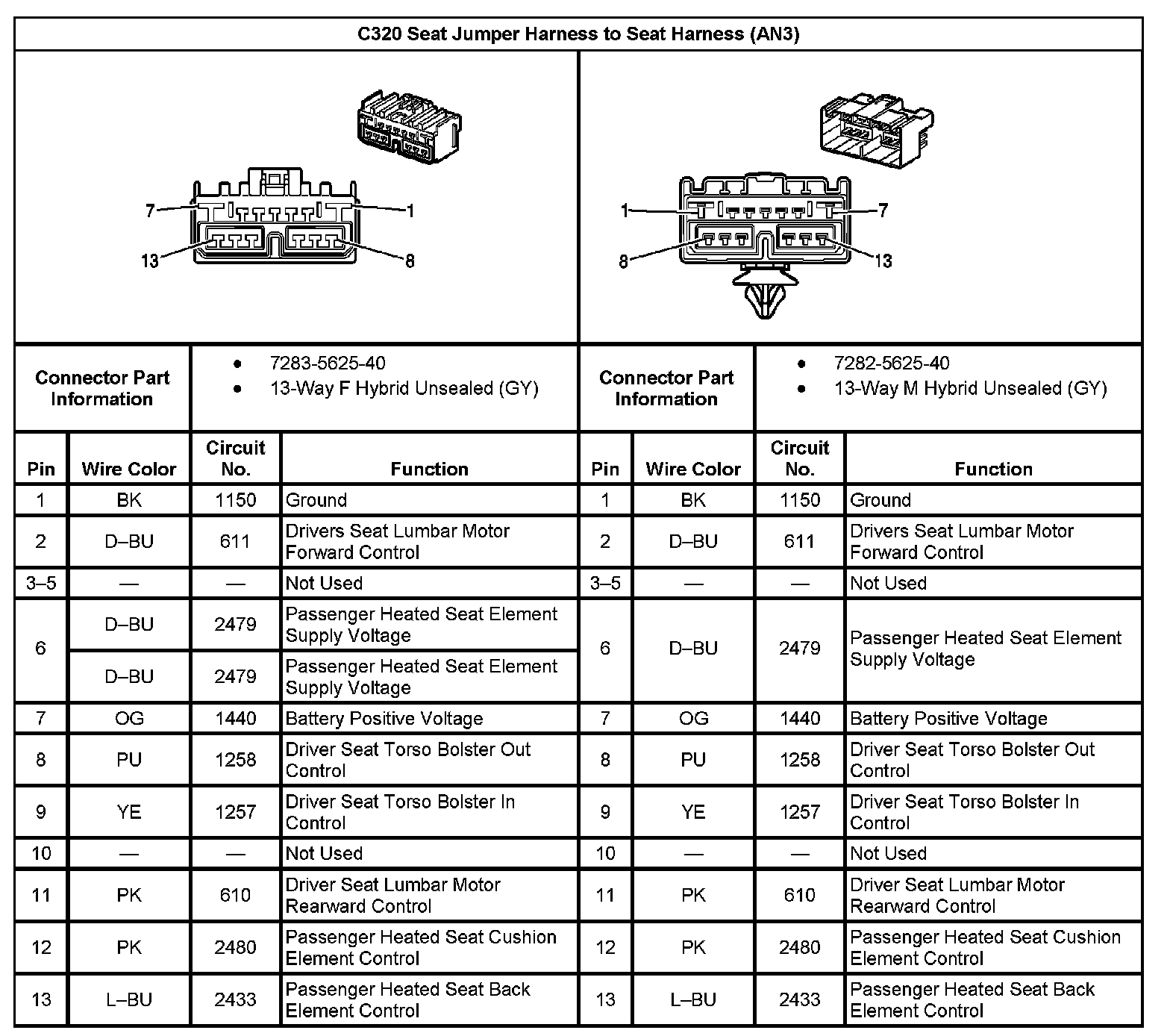 C320 Seat Jumper Harness To Seat Harness (With RPO Code AN3):