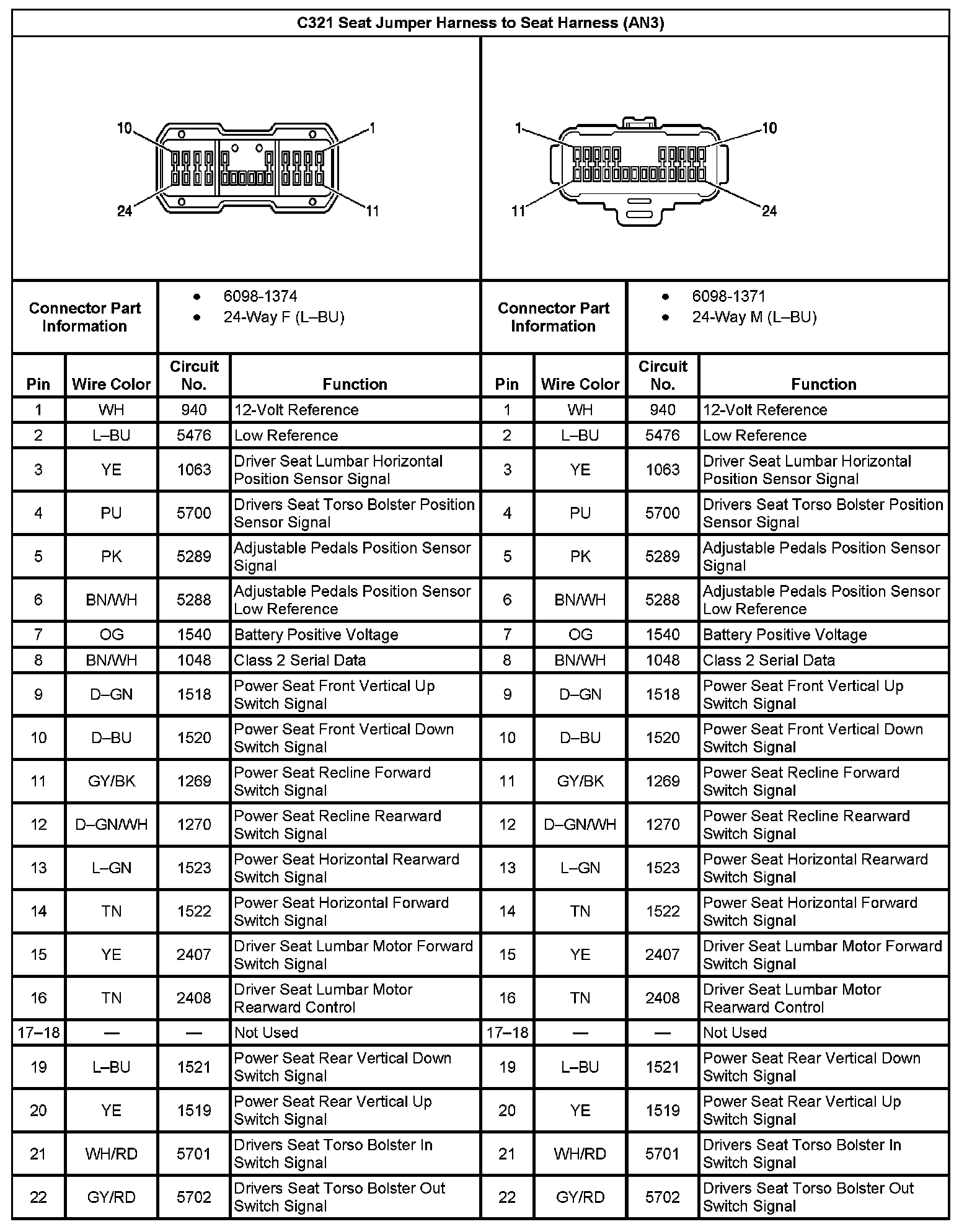 C321 Seat Jumper Harness To Seat Harness (With RPO Code AN3) (Part 1):