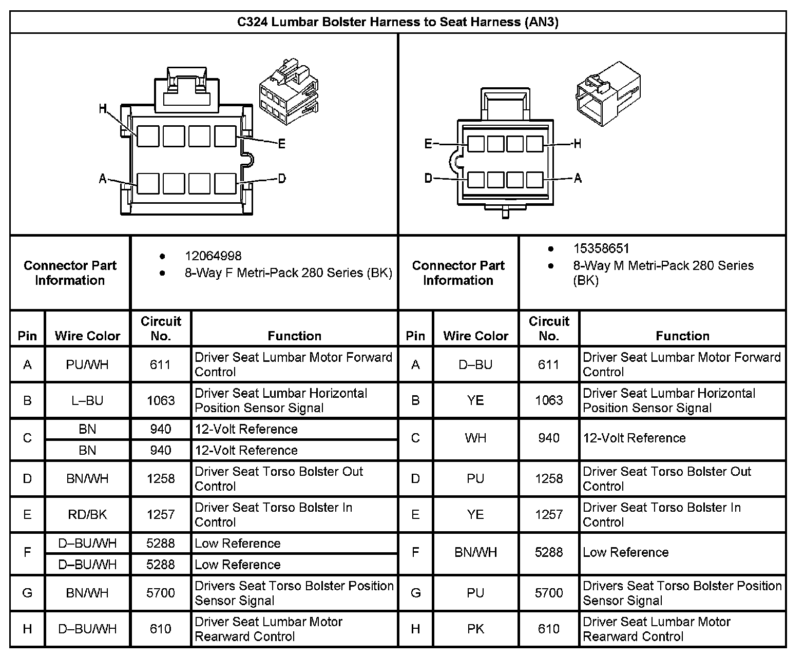 C324 Lumbar Bolster Harness To Seat Harness (With RPO Code AN3):