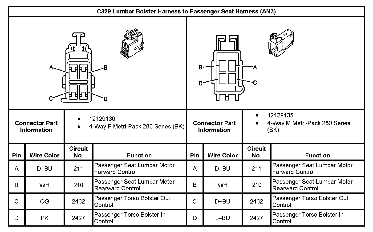 C329 Lumbar Bolster Harness To Passenger Seat Harness (With RPO Code AN3):