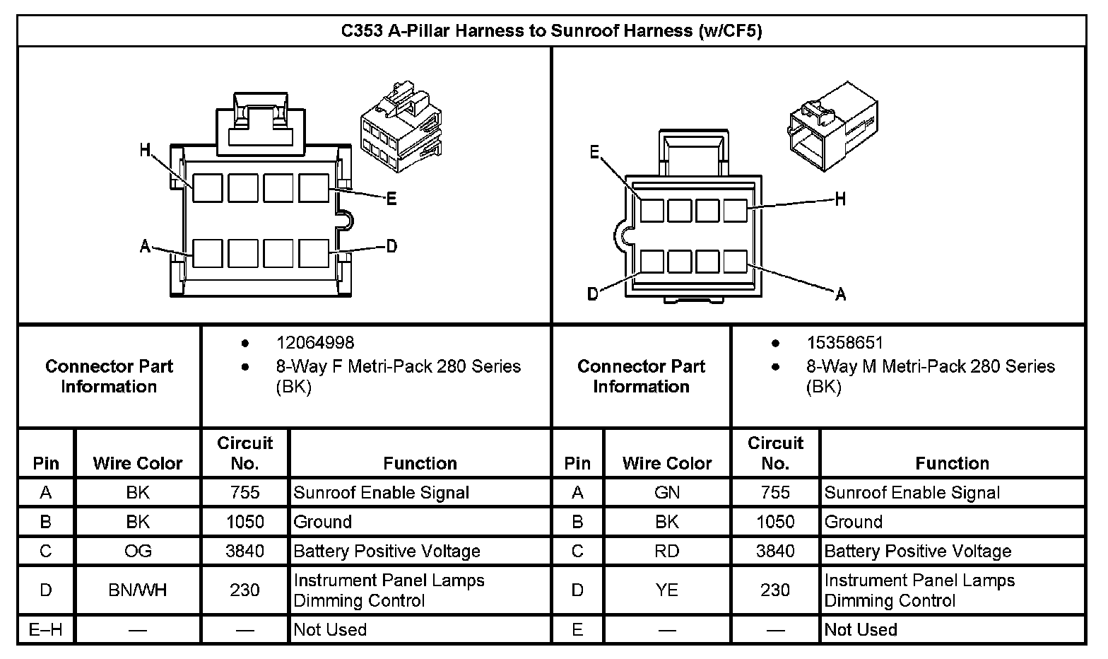C353 A-Pillar Harness To Sunroof Harness (With RPO Code CF5):