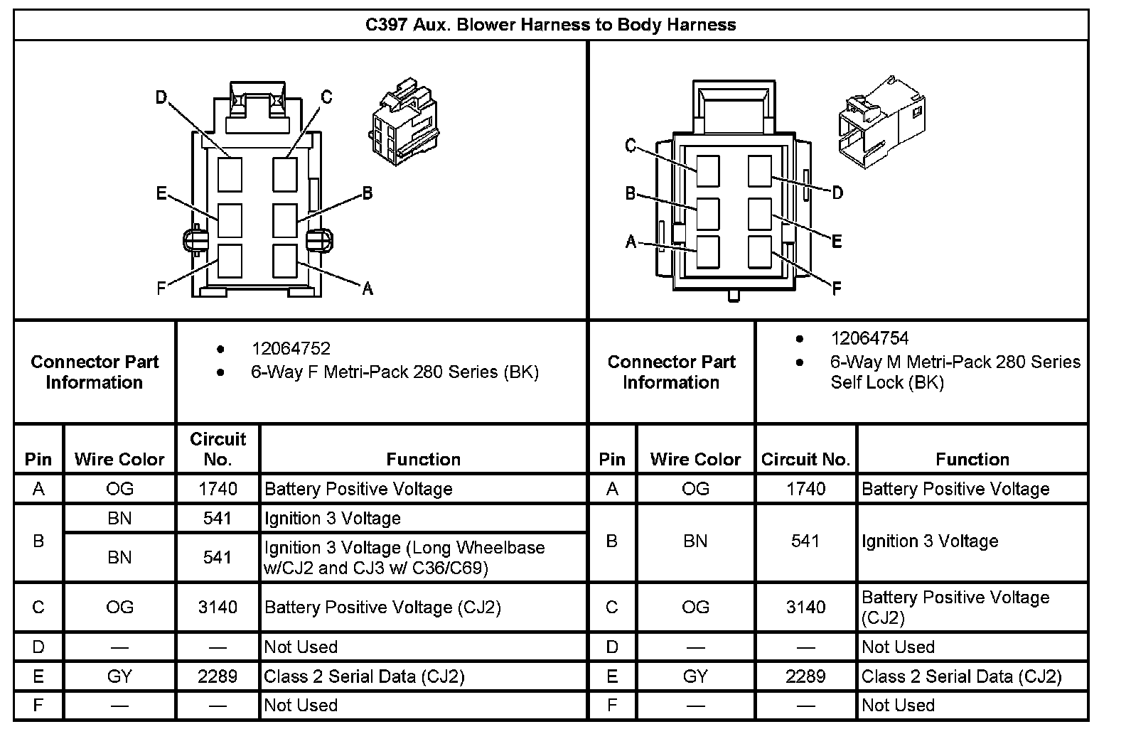 C397 Aux. Blower Harness To Body Harness: