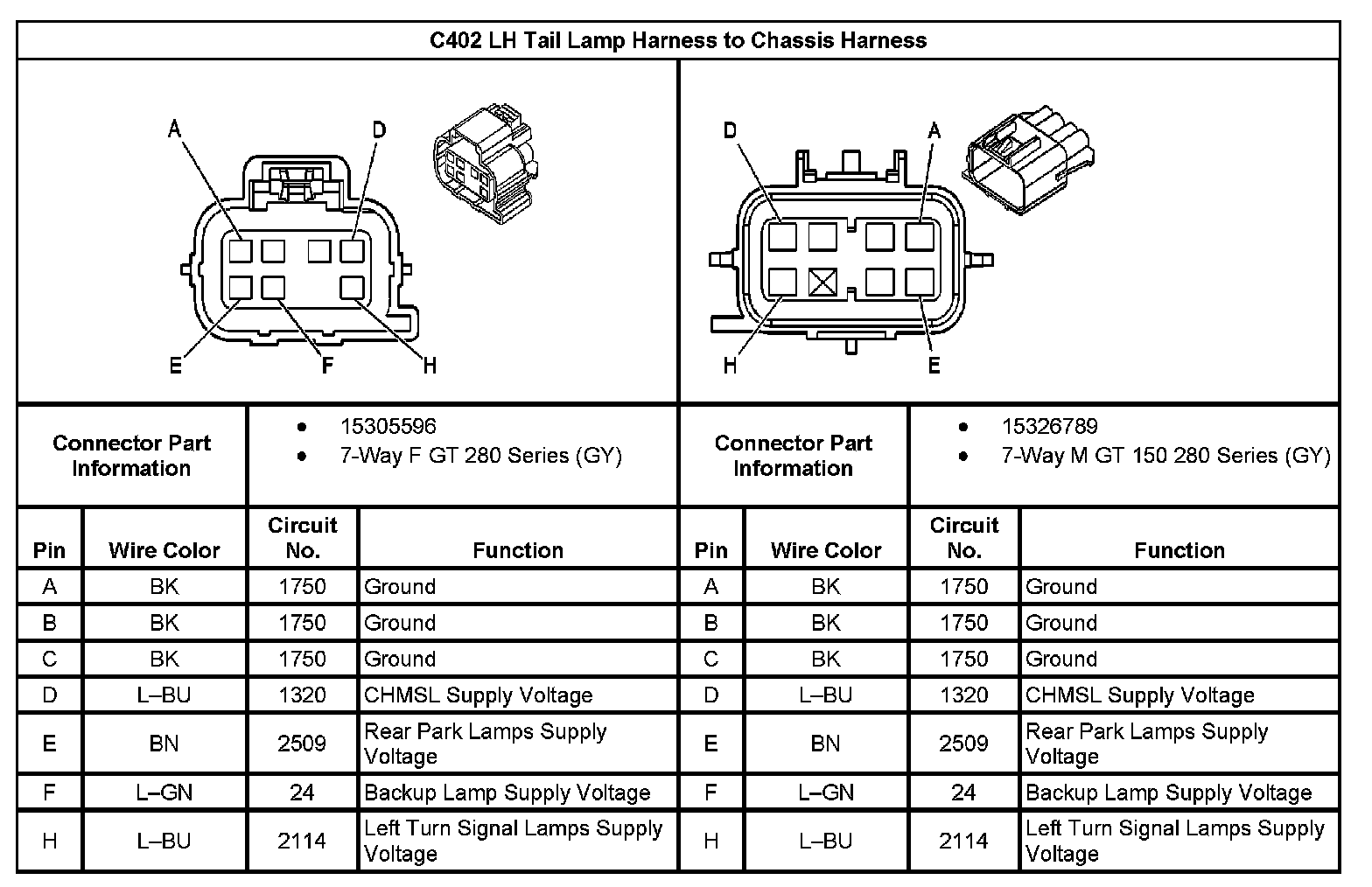 C402 LH Tail Lamp Harness To Chassis Harness: