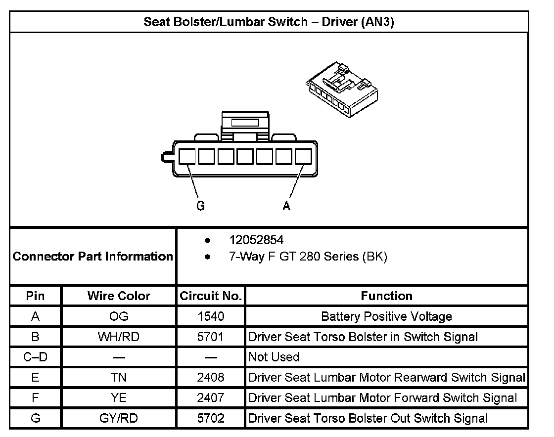 Seat Bolster/Lumbar Switch - Driver (With RPO Code AN3):
