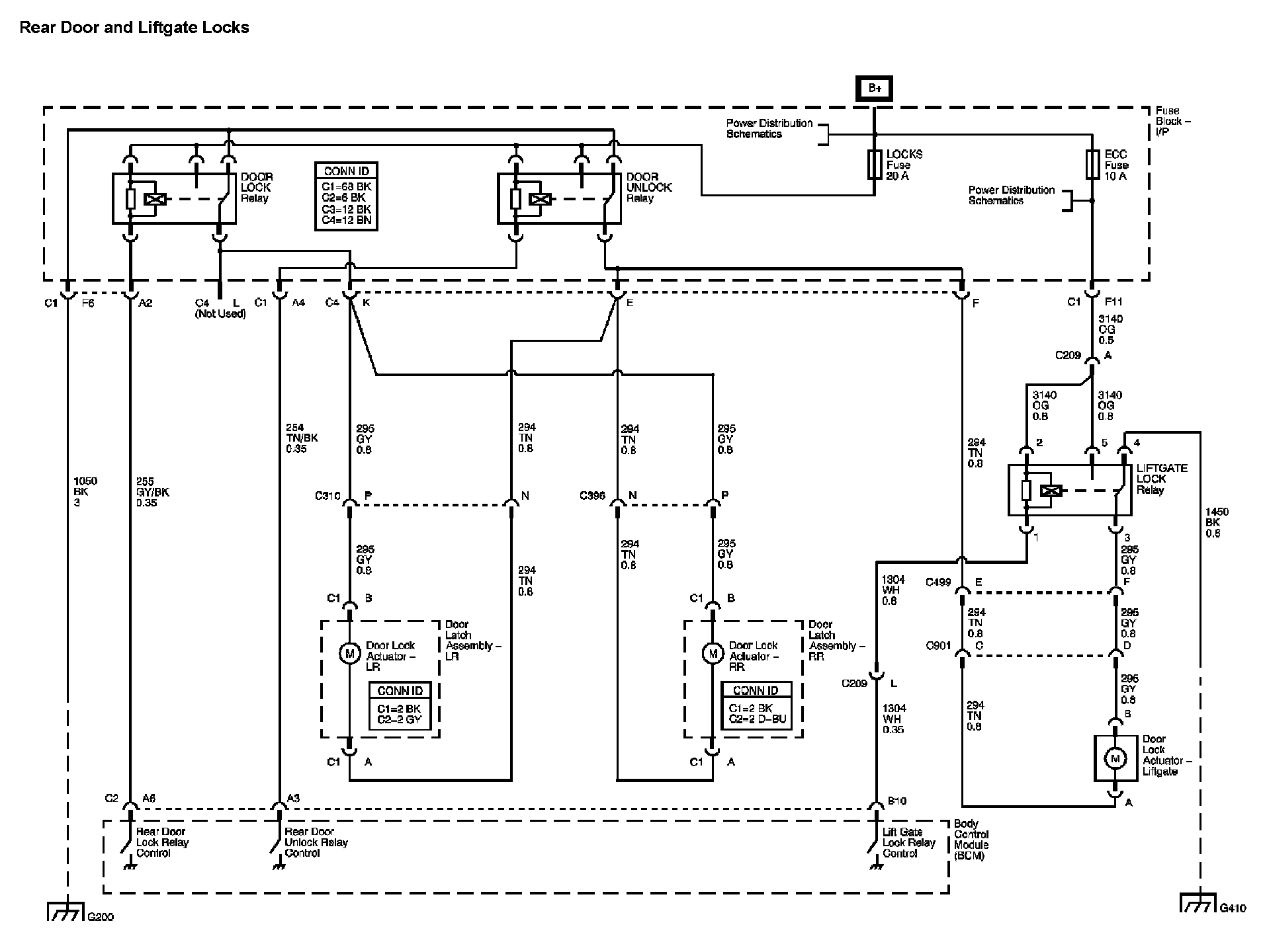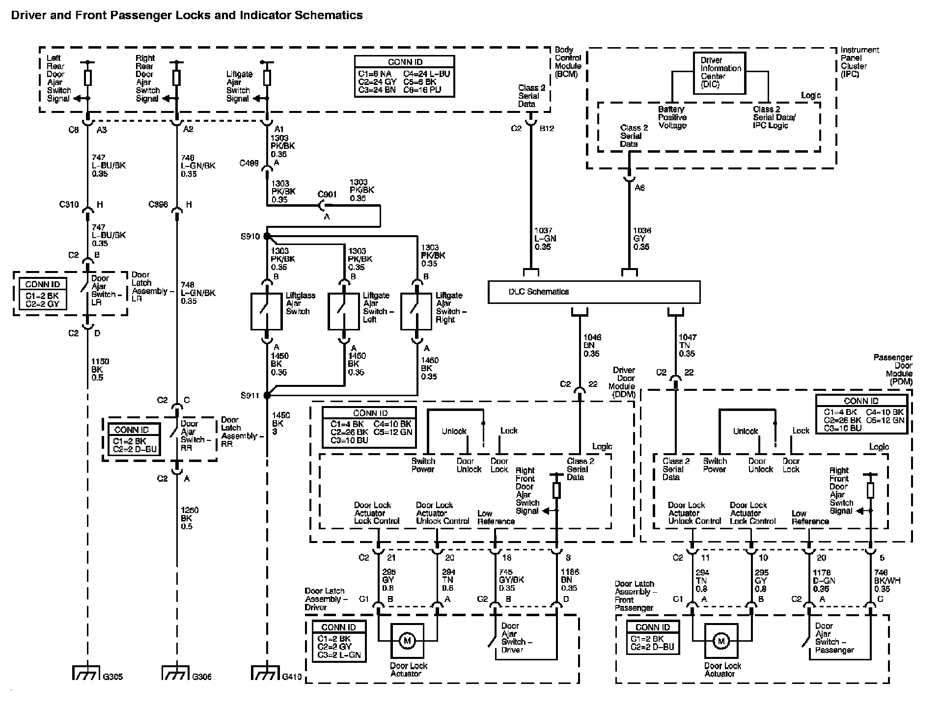 The locations for the Connectors, Grounds, Splices, and Grommets shown within these diagrams can be found via their numbers at Vehicle Locations.