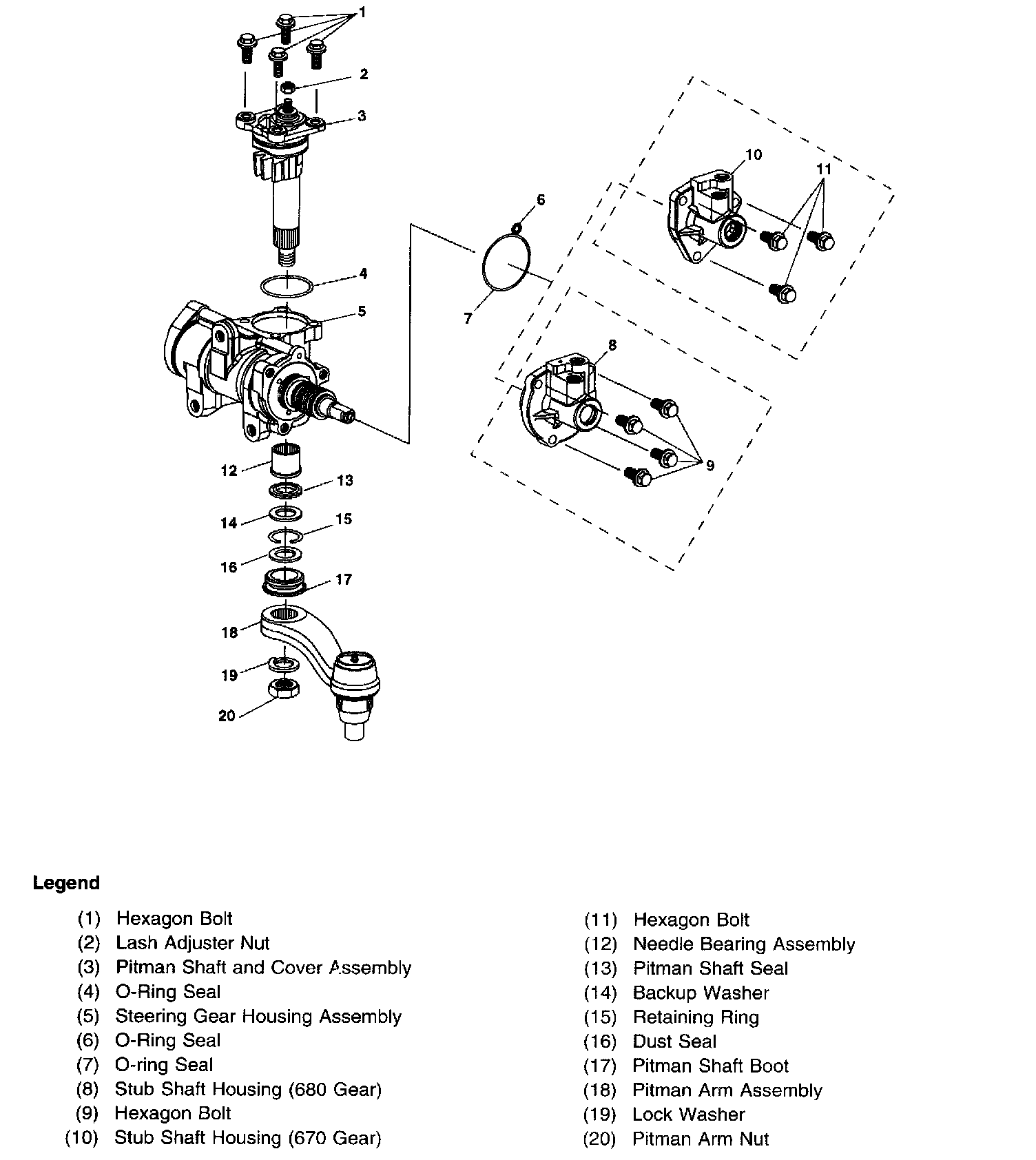 Power Steering Gear Disassembled View (670 Gear)