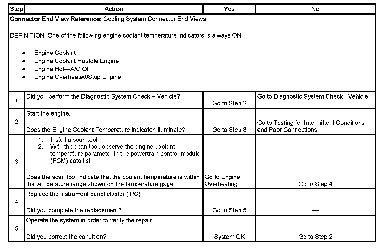 Engine Coolant Temperature Indicator Always On