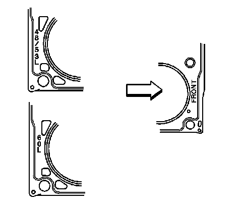 ^ The cylinder head gaskets must be installed in the proper direction and position.