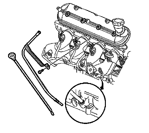 4. Install the oil level indicator tube into the engine block and rotate into proper position.
