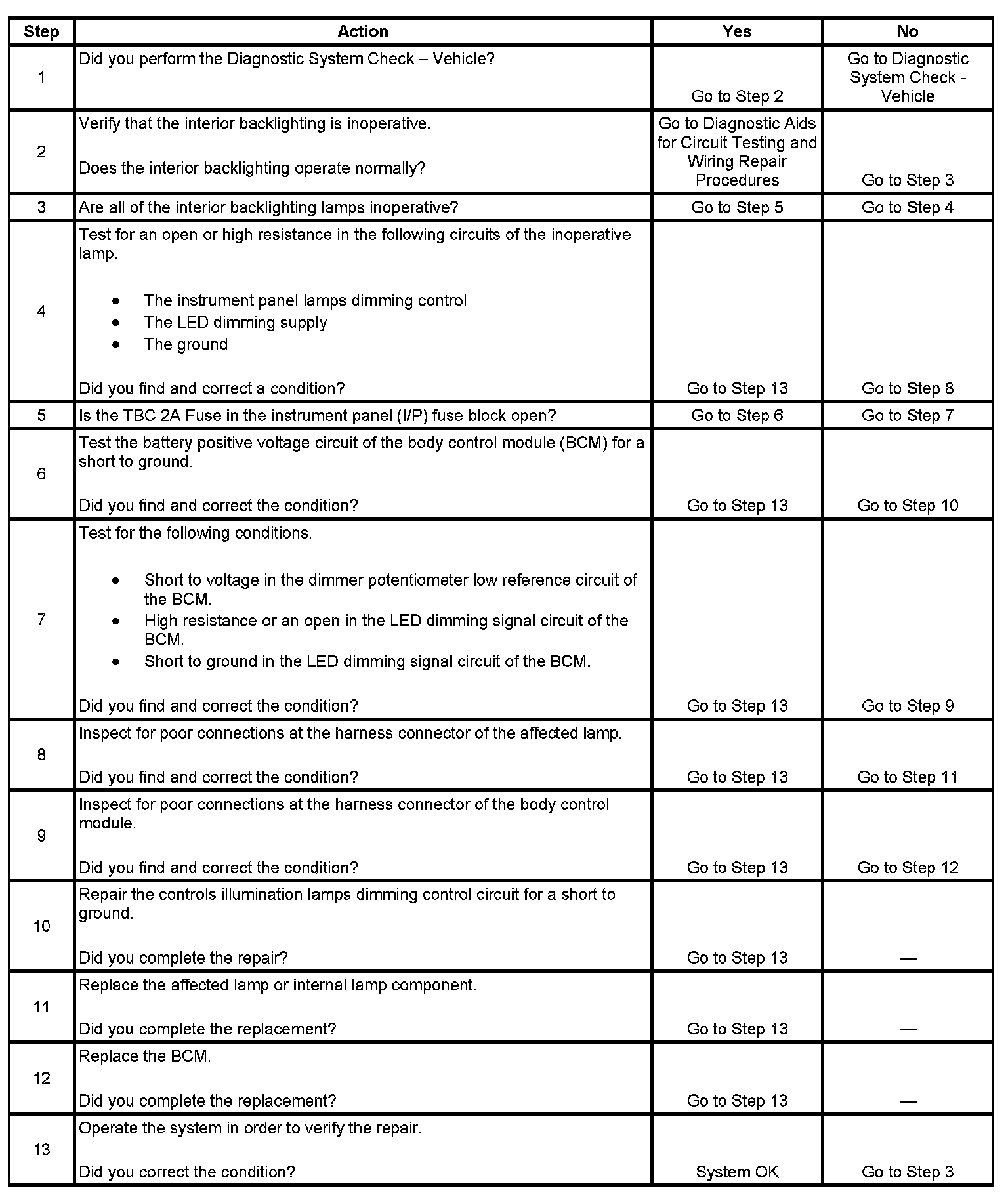 Interior Backlighting Inoperative