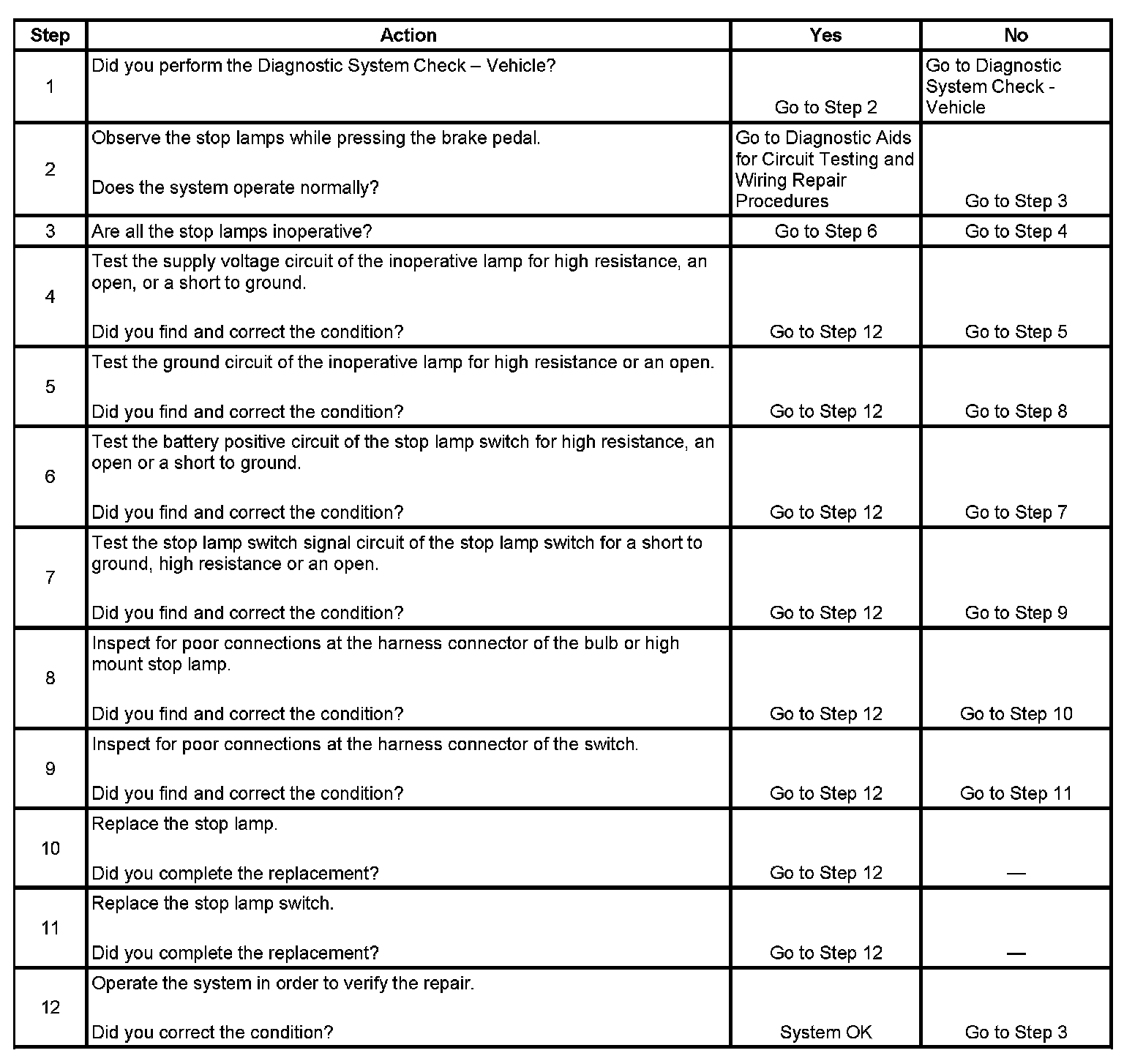 Stop Lamps Inoperative
