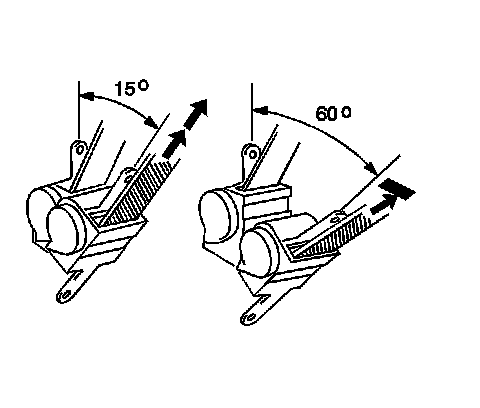 3. Ensure that the seat belt webbing can be pulled from the retractor at an inclination of 15 degrees or less and cannot be pulled from the retractor at an inclination of 60 degrees or more.