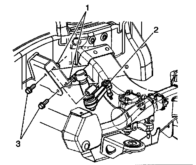 6. Remove the idler arm (2) from the vehicle.