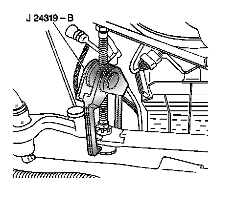 4. Remove the steering damper ball stud from the relay rod using the J 24319-B .