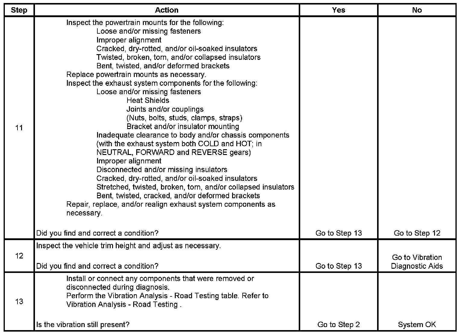 11. Damaged or worn engine, transmission, and/or exhaust mounts may cause a noise or vibration that may be transferred into the passenger compartment.