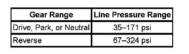 Line pressures are calibrated for two sets of gear ranges-Drive-Park-Neutral, and Reverse. This allows the transmission line pressure to be appropriate for different pressure needs in different gear ranges: