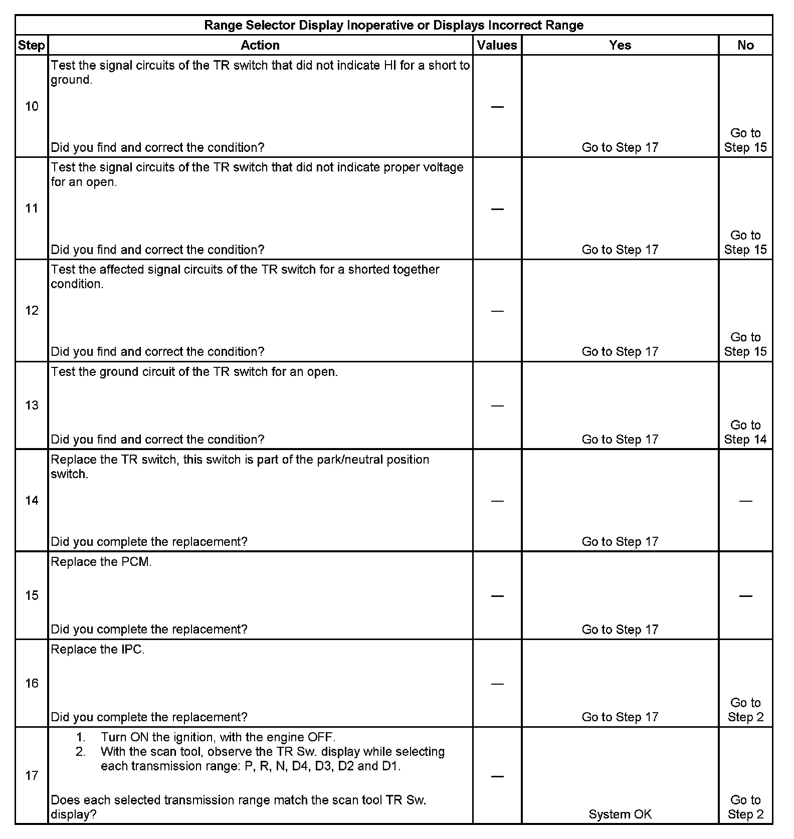 Range Selector Display Inoperative or Displays Incorrect Range
