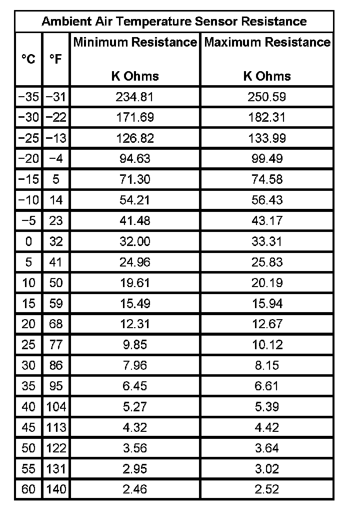 Ambient Air Temperature Sensor Resistance: