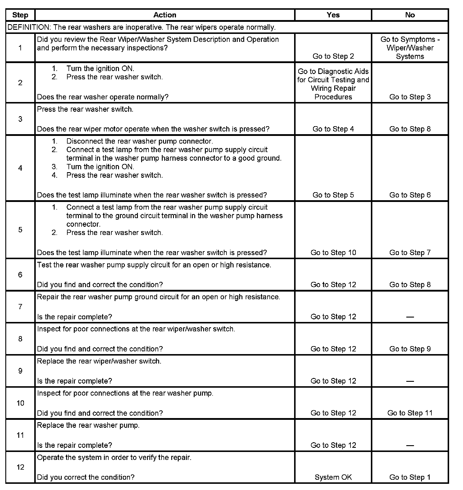 Washer Inoperative - Rear