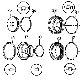^ The 2nd apply piston outer (18) and inner (19) oil seal rings on the 2nd apply piston (17).