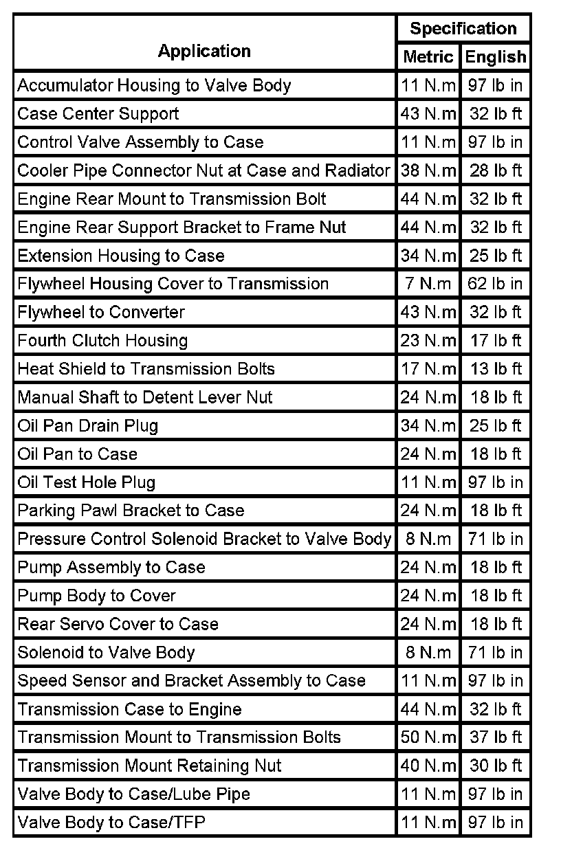 Fastener Tightening Specifications: